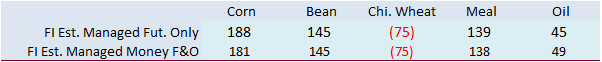 PDF attached include US what by class working estimates Two-sided trade in the soybean complex. Sharply lower soybean oil pulled nearby soybeans lower. Meal ended higher but well-off intraday highs. Corn and wheat rallied on bottom picking. The morning weather...