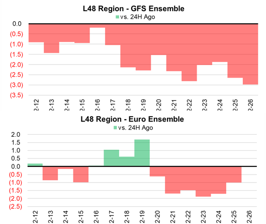 After the 338 draw yesterday, the market shook that off and weather is once again taking over the storyline. This time though its back to the warm story. This morning’s 00z forecast was bearish once again. Both the GFS Ensemble and Euro Ensemble warming.