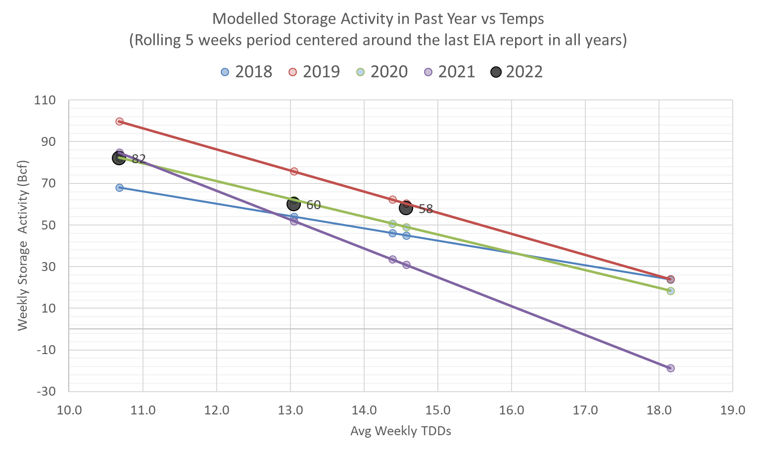 Overall, we estimate this +58 Bcf injection is ~3.9 Bcf/d loose vs the historical rolling 5-week period (wx adjusted). We should note that this number had some additional loose factors embedded into it – namely the lower demand from the July 4th holiday and the freeport outage.