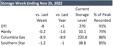 For week ending Nov 18th, our S/D storage model is pointing to a -81 Bcf, while our flow model is much lower at -78 injection.