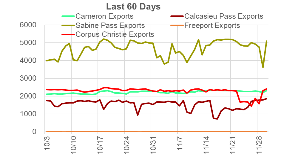 Net LNG deliveries are expected to be 12.8 Bcf today. LNG nominations are posting the highest since the Freeport outage. Sabine Pass was the biggest day-on-day mover, which dropped yesterday to 3.6 Bcf/d momentarily. The issue causing the dip is still unknown. Corpus Christie is also back to operating at normal levels, and Calcasieu Pass is set to hit a record level today of 1.854 Bcf/d.