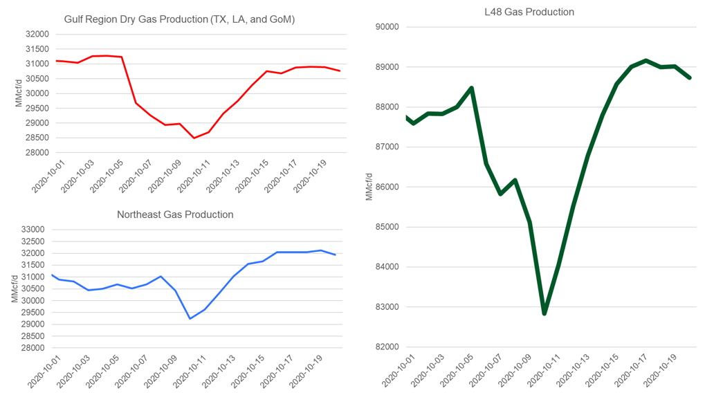Although #Zeta is not expected to be a powerful storm, it’s still headed straight through GoM offshore production. The BSEE.gov reported 162 MMcf/d of natural gas and 294 bpd of oil shut-in as of yesterday. In today’s nomination data, total GoM natgas production looks to be down by over 1 Bcf/d.