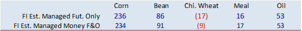 Money managers were not as long in corn but were much more long than expected for soybeans, soybean oil, meal and Chicago wheat. This comes after they reduced long positions for the major agricultural commodities for the week ending 6/15. We see this as slightly supportive, but with the one business day in reporting, some traders may look past the positions as we are four trading days beyond actual data.