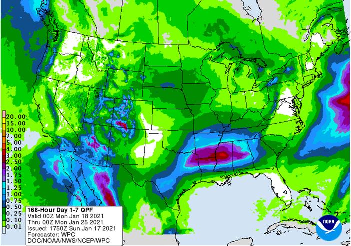 next larger storm will impact the southern Plains Thursday and Friday, Jan. 21-22 before moving through the Delta to the lower half of the Atlantic Coast in the following weekend - Rain