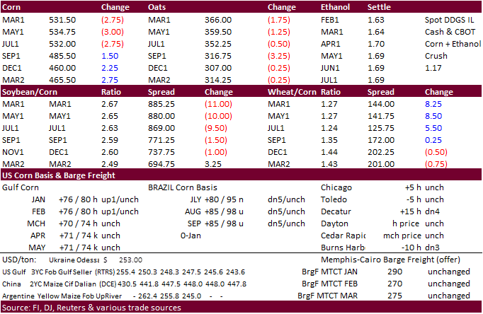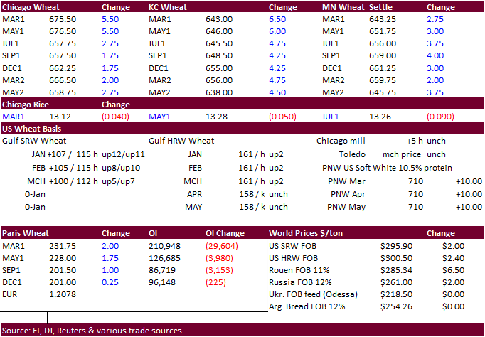 wheat traded higher after Russia said they will impose higher export duties than what they previously planned. Russia will raise its wheat export tax to 50 euros ($60.68) per ton beginning March 1 until June 30 from the 25 euro-per-ton tax set for Feb. 15