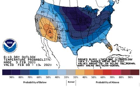 Snow cover in northern Russia and northeastern Europe is sufficient to support crop needs during the colder periods that may evolve later this week and deeper into February. Snow free areas in southern Europe, Ukraine and Russia’s Southern Region should not be threatened by damaging cold weather in the next week.