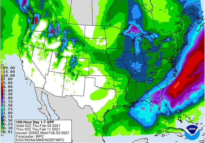 China and Europe crops are dormant and will remain in favorable condition for the next few weeks. Western Europe has become a little too wet.