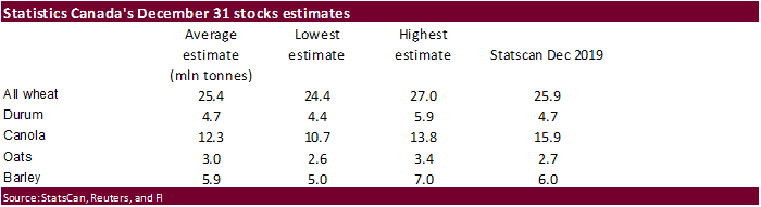 - Statcan reports on wheat, soy, durum, canola and barley stockpiles in Canada