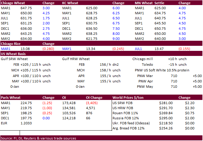CBOT Corn settled above $5.50 for the first time since 2013. Egypt’s bought 58,000 tons of soybean oil following yesterday’s wheat tender.