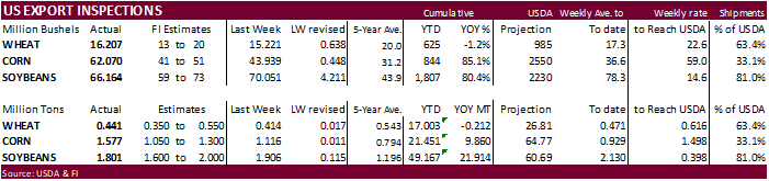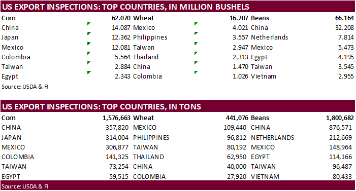 weekly crop net-export sales for corn, soybeans, wheat, cotton, pork, beef, 8:30am - Conab’s