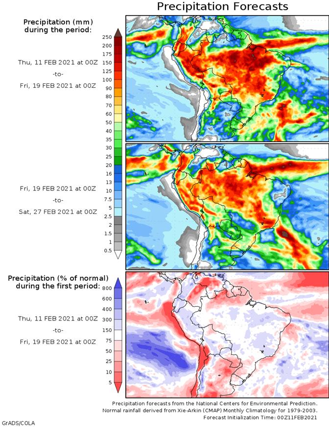worry over Brazil harvest weather for soybeans and planting progress for Safrinha corn will continue, although the past week has been ideal in firming up the topsoil and supporting faster fieldwork. Expected rain over this coming week will disrupt fieldwork,
