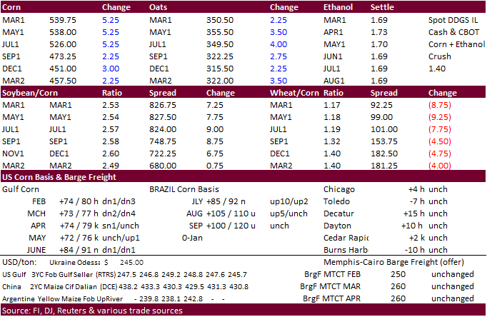TMO bought about 235,000 tons of optional origin corn for Feb 19-Mar 15 shipment. Lowest price was estimated to be $269 a ton c&f.