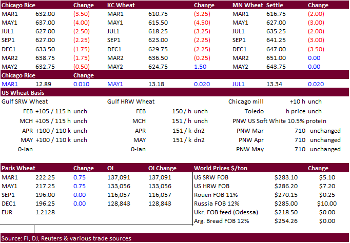 Africa wheat is drying out except in north-central Morocco where conditions have been ideal. Drought has already cut into southwestern Morocco production and the same may occur in northwestern Algeria if spring rainfall is not very good.