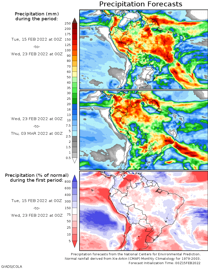 · South America’s weather situation still calls for mostly dry weather across drought areas for the balance of the week before rain develops during the second week of the outlook.