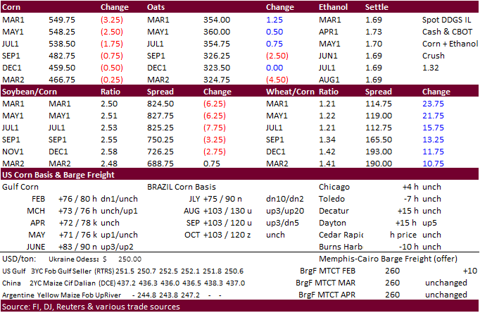 futures ended mostly lower in part to bear spreading in soybeans. Less than expected 92 million area US corn planting outlook for 2021 (92.9 Reuters guess) did little to stop overall selling but in the end may have influenced late bear spreading. News was