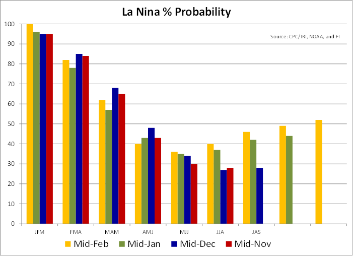 and more uniform rain is needed to induce a more generalized bout of flowering in coffee and cocoa areas, but the showers occurring now are not unusual for February and should increase next month - Other