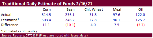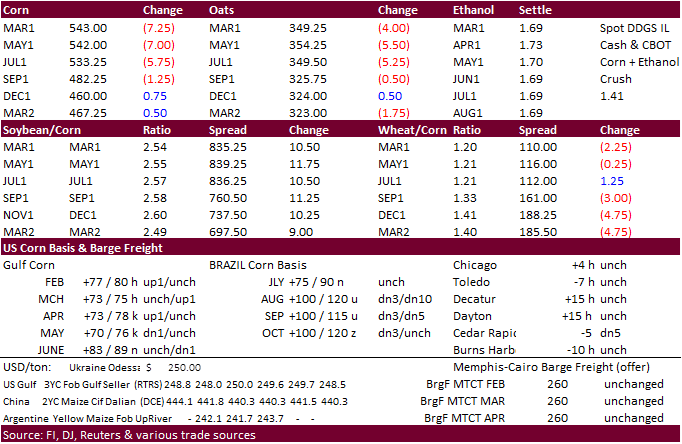 this week. The talk Friday for US corn revolved on current and new-crop US exports, although USDA penciled in a high US corn yield. Yields can make or break the 2021-22 US balance sheet, so spring weather will be very important to watch over the medium term.