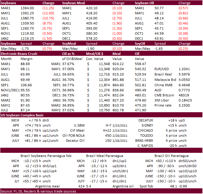 CBOT agriculture markets were once again higher Sunday night into Monday morning and sold off during the day session. USD traded higher. WTI crude and other energy markets sold off on renewed Covid-19 variant concerns spreading throughout the world, just after the United States FDA over the weekend approved the use of the J&J single-dose Covid-19 vaccine shot. US equities shot up after yields paired gains.
