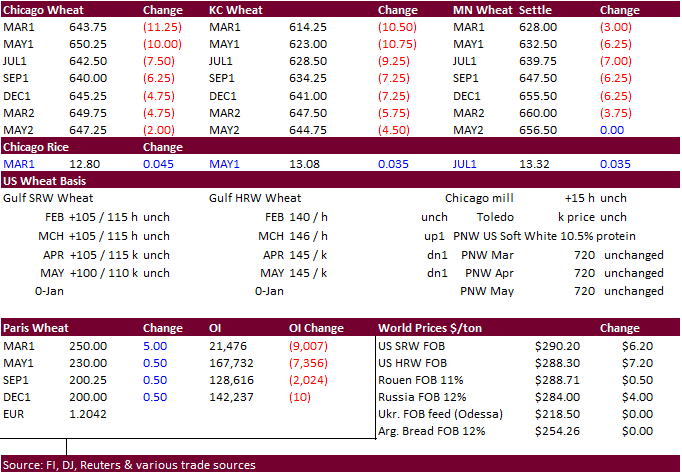 - Summer crop conditions will remain favorably rated, although there will be a growing need for showers by mid-March