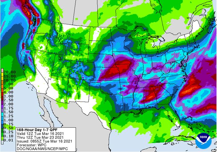 Delta and southeastern states will experience a more active weather pattern over the next week slowing fieldwork after a nice start in some areas during the latter part of last week and into the weekend - U.S.