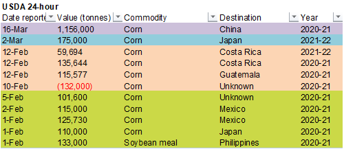 corn sales as of March 4.