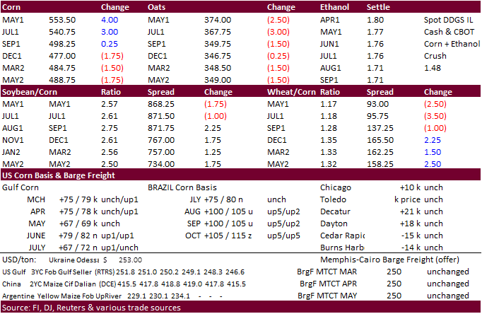 MFIG seeks up to 65,000 tons of corn, optional origin (NA or SA) on March 17 for May 27-June 15 shipment.