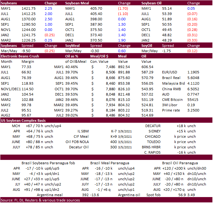 were initially lower on follow through selling after the poor NOPA crush (17-month low) and expectations for the 2021 US soybean and corn area to end up above USDA’s agriculture outlook forum.