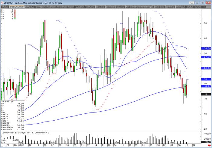 soybean meal spread has tightened over the past month and half