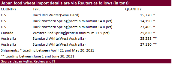 South Korea’s Agro-Fisheries & Food Trade Corp. seeks 208,217 tons of rice, on March 25 for arrival in South Korea in 2021 between May 1 and Oct. 31. 64,444 tons of non-glutinous brown rice is sought