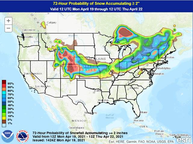 weather in U.S. Plains and Midwest this week will slow crop development, but some corn and other crop planting will continue or begin especially late this week after the peak of the cold surge abates.