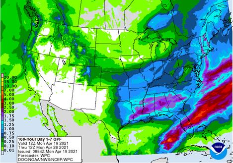 bottom line for the United States remains mostly good for spring planting, although there will be some precipitation this week to disrupt field progress. Cold weather may damage some of the winter wheat in the southwestern Plains, northern Delta and North