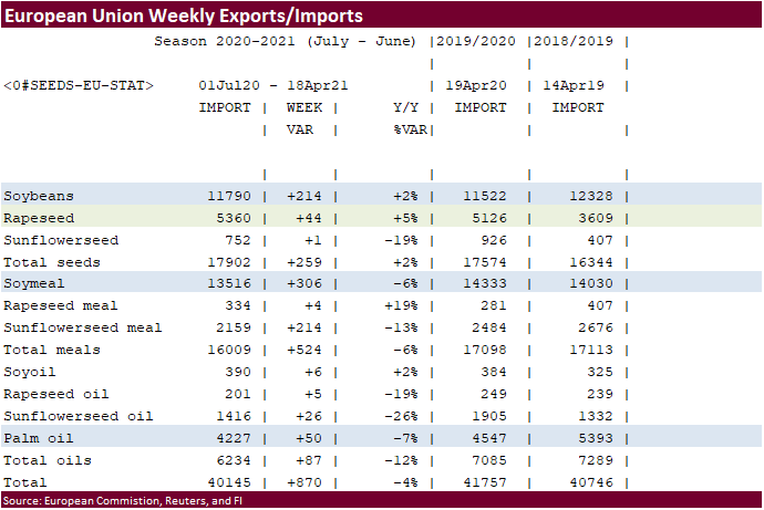 estimated 2021 Ukraine sunflower production at 16.4 million tons, up 15% from last year.