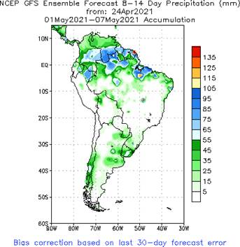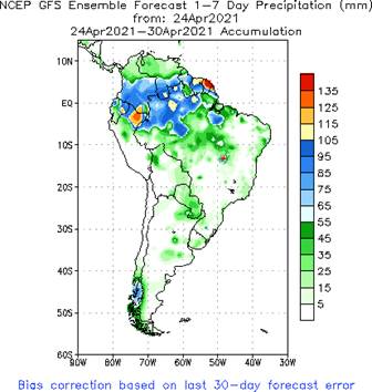 this morning occurred mostly in crop areas of North Carolina, Virginia and areas north into the eastern Midwest with little to no impact compared to that of other days this week - Brazil