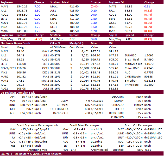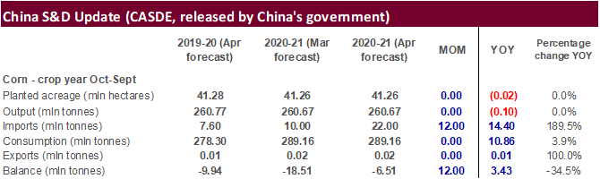 Africa’s Crop Estimates Committee (CEC) will update their 2020-21 corn production on April 29 and a Reuters trade estimate is at 16.349 million tons, up from 15.922 million tons projected in March and above 15.3 million collected last year.