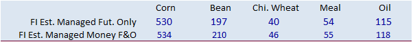 corn and soybean plantings were as expected at 17 and 8 percent, respectively, but corn is lagging its respected 5-year averages by 3 points. Soybeans are running 3 points above average.