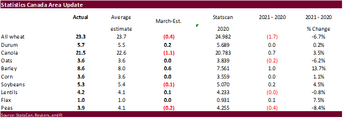 as of 4/15 total 3.2 million tons vs. 579,477 tons for 2019-21 total commitments. USDA shows China importing 10.5 million tons of wheat in 2020-21 compared to 5.38 million tons in 2019-20 and 3.15 million in 2018-19.