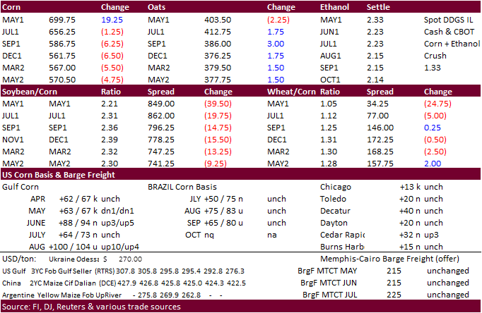 is First Notice Day. Ongoing Brazil second crop worries were supporting corn early. Concerns US spring corn plantings are running slow also underpinned prices. But as trading turned choppy, fund selling overtook the CBOT corn back months.