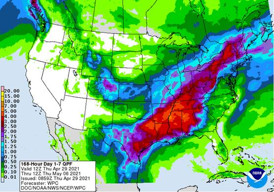 corn and soybean production areas will see alternating periods of rain and sunshine causing some periodic disruption to fieldwork - Locally