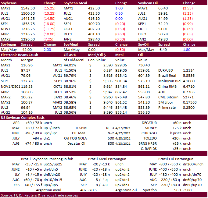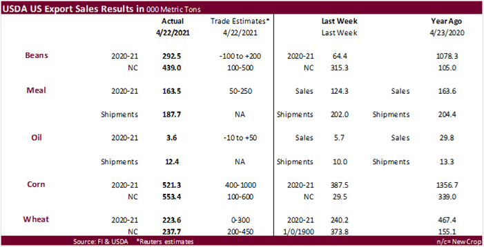 summary is based on reports from exporters for the period April 16-22, 2021.
