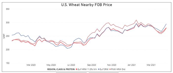 prior 4-week average. The destinations were primarily to Egypt (106,900 MT, including 58,200 MT – late), Mexico (62,100 MT), Japan (55,000 MT), Saudi Arabia (29,200 MT), and Colombia (23,900 MT).