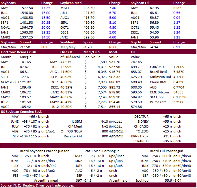 and down from 14.8 million from April 2020. Anec sees Brazil May soybean exports slipping to 12 million tons. July SBO hit a fresh record today. Meal was up sharply.