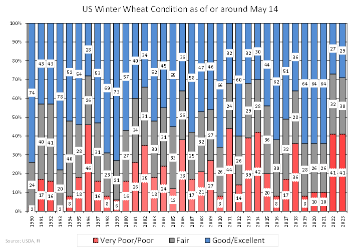 USDA US winter wheat conditions have not changed much since the start of the reporting year, but also poor similar to year ago.