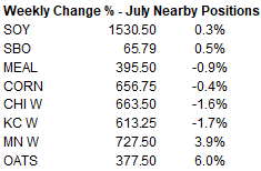 - Earlier this week USDA bought 83,000 tons of HRW wheat for Africa at $263.36-$264.01/ton for July 6-16 shipment.