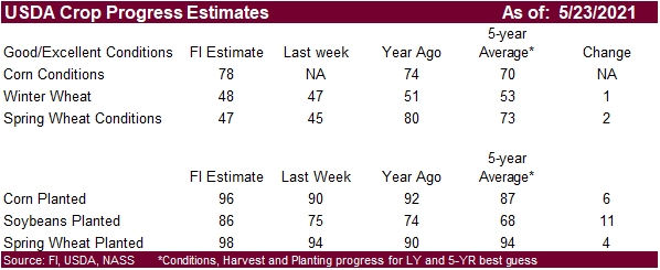 - U.S. crop condition and planting — corn, cotton, soybeans, wheat, 4pm