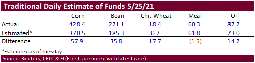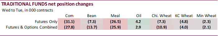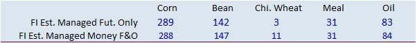 - Funds sold an estimated net 4,000 soybeans, bought 4,000 soybean meal and sold 4,000 soybean oil.