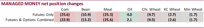 - Funds sold an estimate net 18,000 corn contracts on the day.