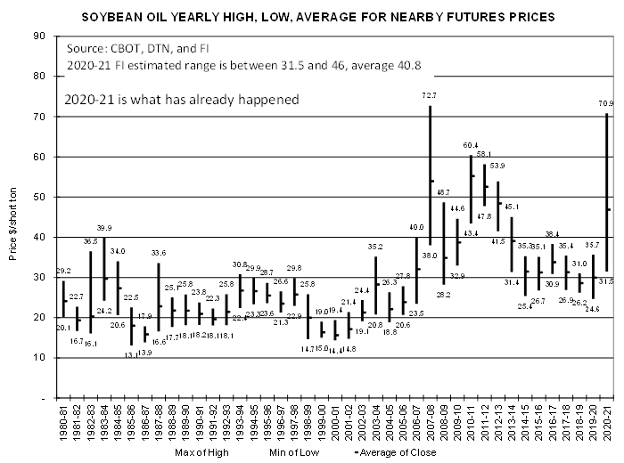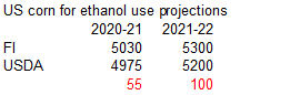 - We look for 2021-22 US soybean oil stocks to fall to 1.103 billion pounds from 1.661 billion for 2020-21 (USDA higher at 1.818 billion), smallest since the 2003-04 crop year. Remarkably the absolute crop-year high during that year for nearby SBO was around 35.2 cents. Attached is our updated US SBO balance sheet. Meal and soybean oil balances will be out mid next week post NASS crush report.