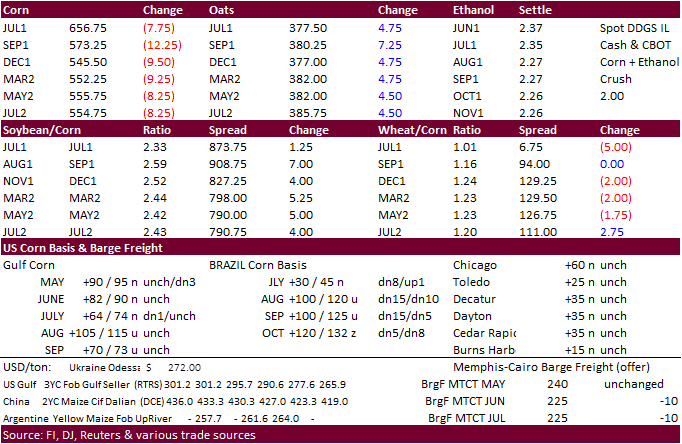 - The French corn crop was rated 91% as of May 24, down from 93% previous week and up from 83% year ago.