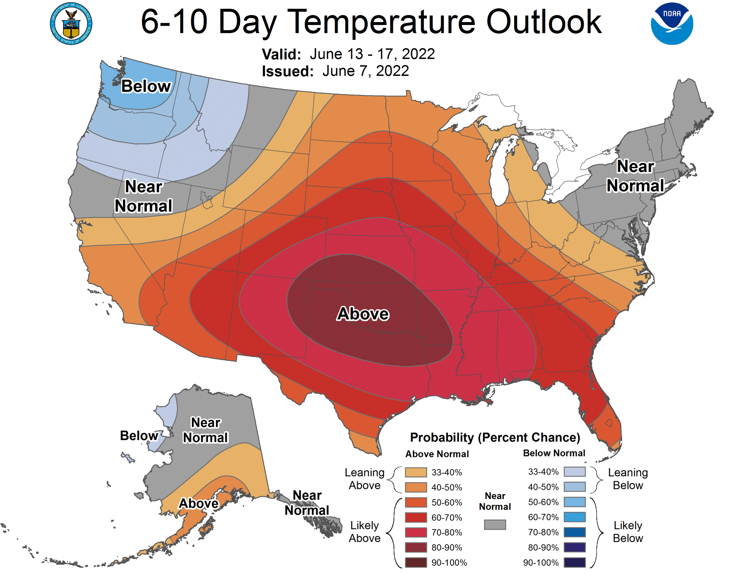 Weather does look good this week for crops, but the 6-14 day maps show above normal temps and below normal precipitation. Traders will be monitoring this for any changes.