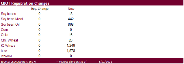 Ethiopia seeks 400,000 tons of milling wheat on June 14, two lots of 200,000 tons each with delivery within 70 to 90 days of contract date. They may float another import tender soon.